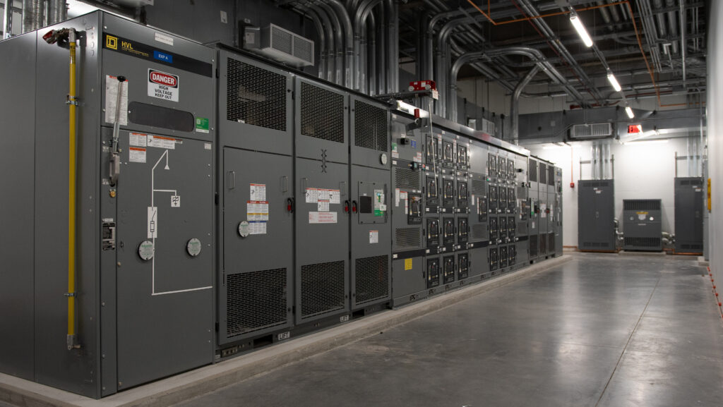 - Power & Distribution: Installation of a new 5,000‑amp service fed from an adjacent substation, along with complete electrical gear, switchgear, and distribution systems to support a fully loaded research facility.