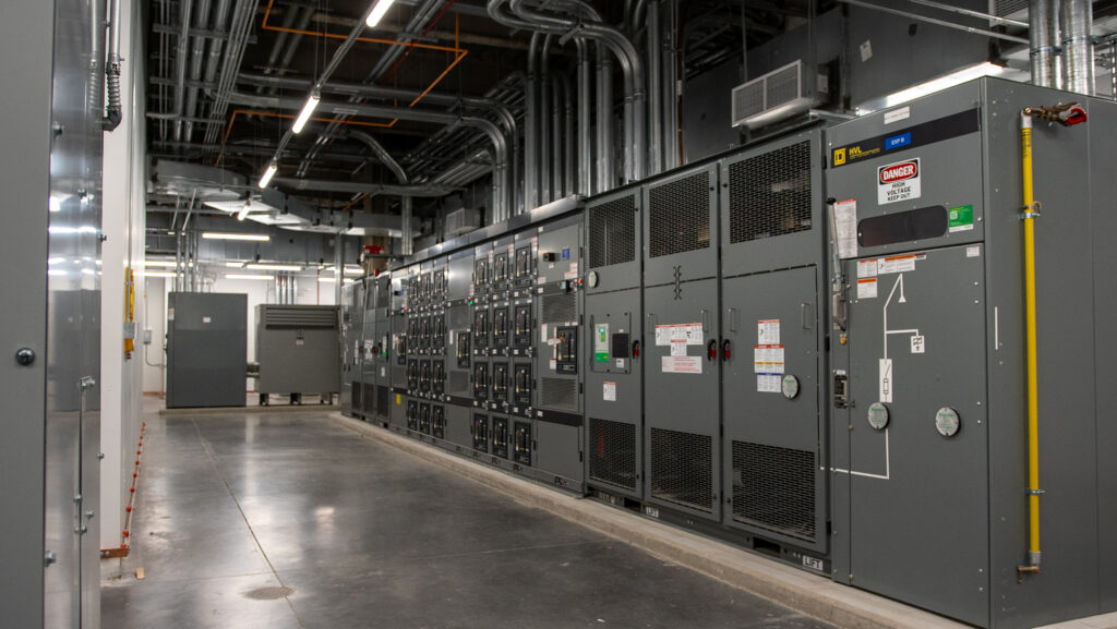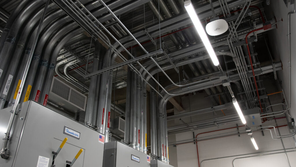 - Prefabrication & 3D Coordination: Extensive use of prefabricated conduit racks, CAD coordination, and Trimble layout, enabling racks and piping to be installed before switchgear delivery and prior to the building being weather‑tight.