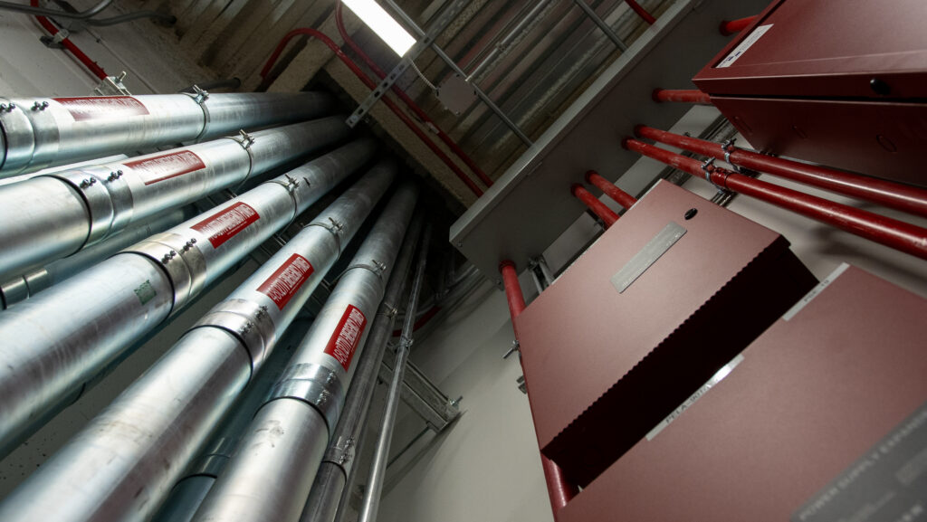 - Fire Alarm System: Complete furnishing and installation of a new fire alarm system throughout all lab floors, engineering spaces, public areas, and mechanical rooms.