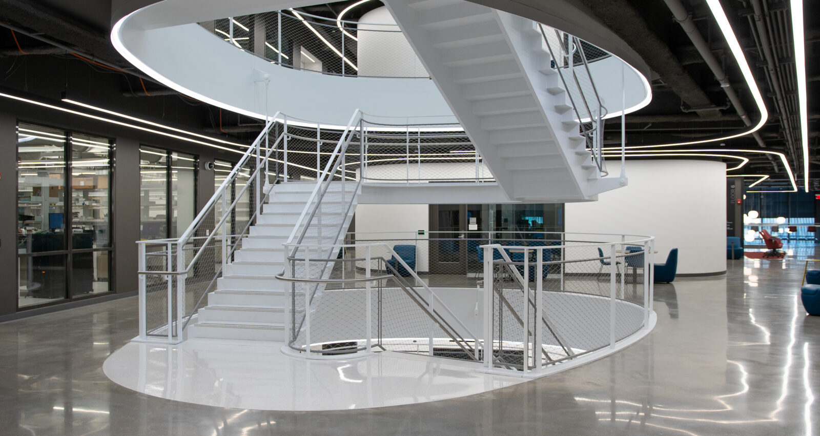 - Lighting Systems: Deployment of 15,000+ linear feet of custom linear lighting, much of it installed along curved architectural walls requiring extreme precision in dimensioning, support layout, and wiring methods.