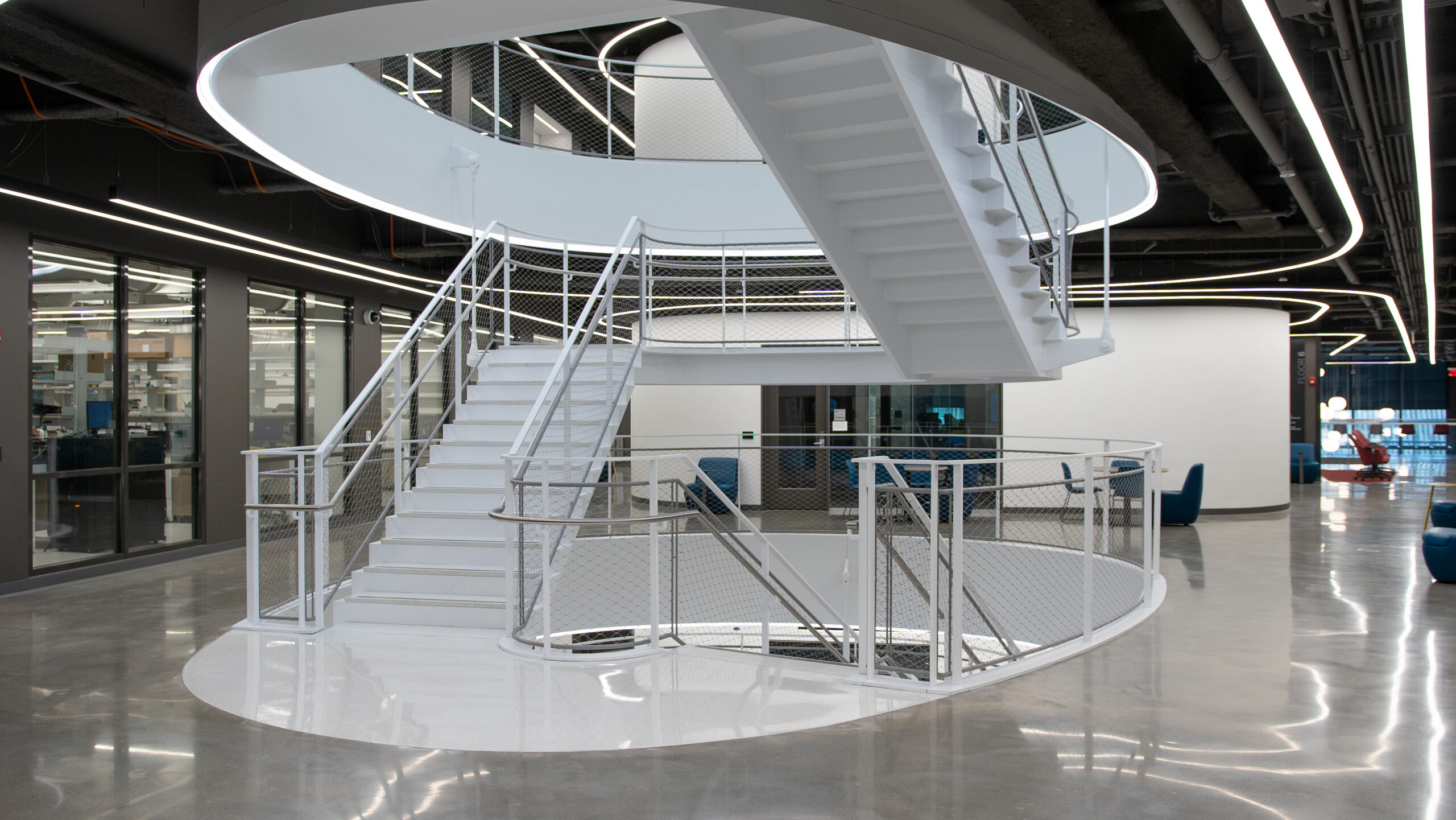 - Lighting Controls: Integration of a complex Lutron lighting control system, supporting highly flexible lab, teaching, and collaboration environments.