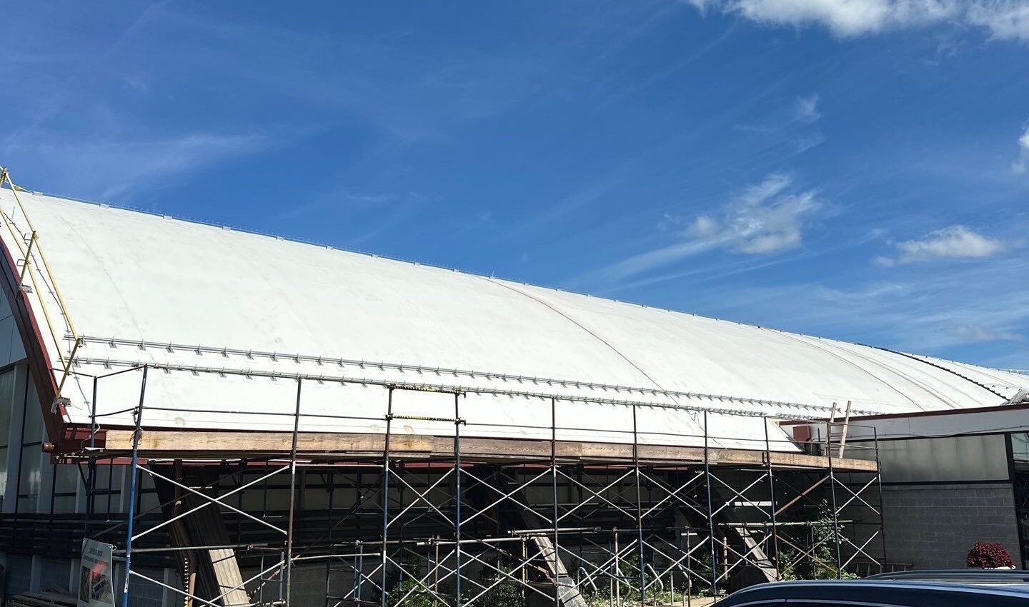 This installation required working on a curved roof surface, which introduced unique safety and mobility constraints for the team. Electricians were secured with full fall‑protection systems, including harnesses and rope lines, throughout the entire process. These conditions made panel placement, alignment, and movement across the roof more difficult, requiring thoughtful planning and strict adherence to elevated safety protocols.